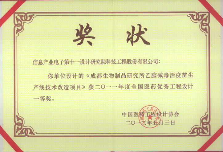 • CIB Japanese encephalitis vaccine of China Medicine First Prize